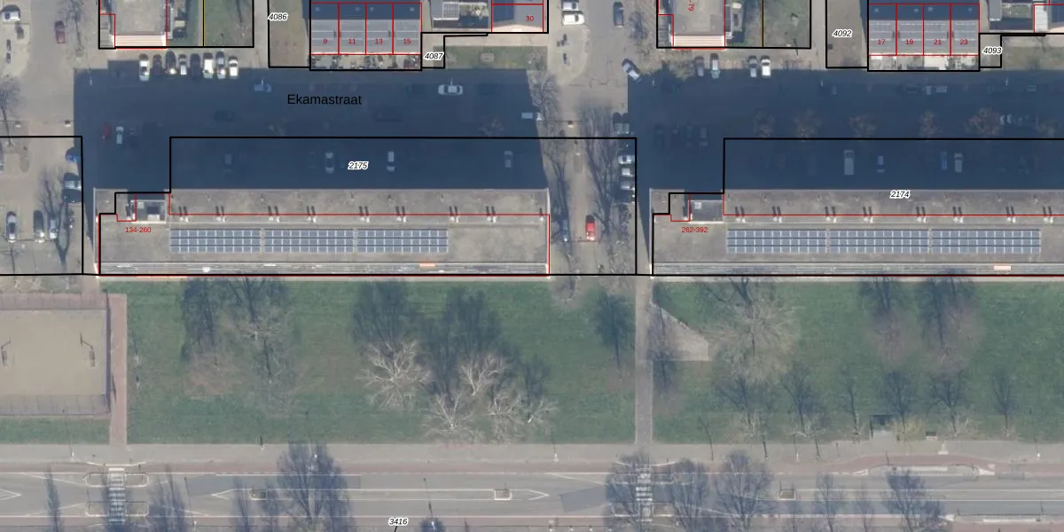 Ekamastraat 260 is gelegen op kadastraal perceel HLM02P2175. Deze kadastrale aanduiding is uniek en wordt gebruikt door het Kadaster om eigendomsrechten en andere zakelijke rechten vast te leggen. Het perceel maakt onderdeel uit van de kadastrale gemeente Haarlem.