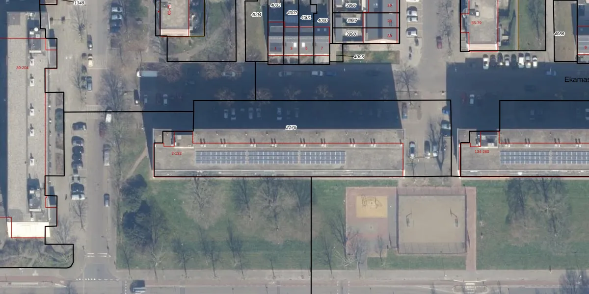 Het perceel waarop Ekamastraat 28 staat heeft een oppervlakte van 2474 m². Dit is een zeer groot perceel. De perceeloppervlakte wordt geregistreerd door het Kadaster. Gedetailleerde informatie over de maten van dit perceel kunt u vinden in het rapport Kadastrale kaart met maatvoering van Ekamastraat 28.
