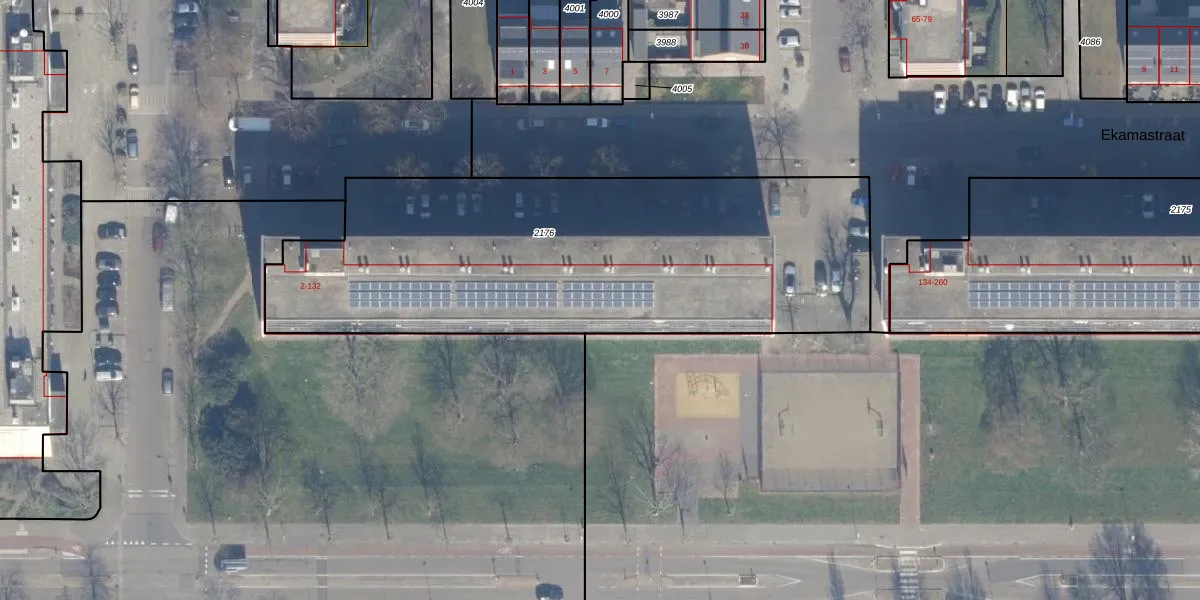 Het perceel waarop Ekamastraat 76 staat heeft een oppervlakte van 2474 m². Dit is een zeer groot perceel. De perceeloppervlakte wordt geregistreerd door het Kadaster. Gedetailleerde informatie over de maten van dit perceel kunt u vinden in het rapport Kadastrale kaart met maatvoering van Ekamastraat 76.