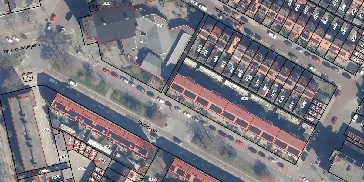 Het perceel waarop Eksterlaan 11 staat heeft een oppervlakte van 1970 m². Dit is een zeer groot perceel. De perceeloppervlakte wordt geregistreerd door het Kadaster. Gedetailleerde informatie over de maten van dit perceel kunt u vinden in het rapport Kadastrale kaart met maatvoering van Eksterlaan 11.