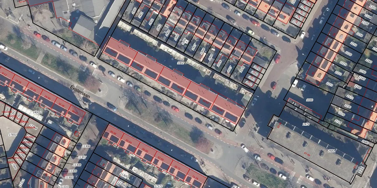 Eksterlaan 43 is gelegen op kadastraal perceel STN01A1902. Deze kadastrale aanduiding is uniek en wordt gebruikt door het Kadaster om eigendomsrechten en andere zakelijke rechten vast te leggen. Het perceel maakt onderdeel uit van de kadastrale gemeente Schoten.
