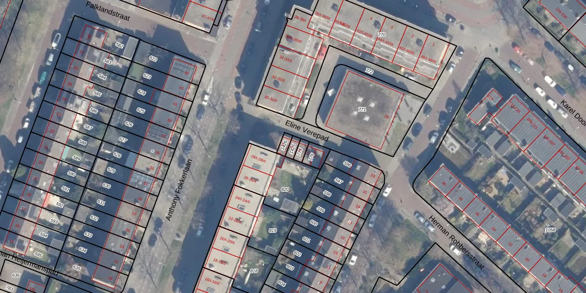 Gebruik de zoekbalk of klik op een perceel voor informatie over de adressen binnen dit perceel.