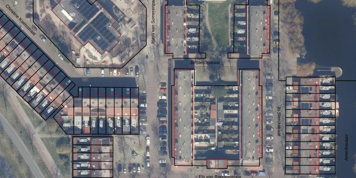 Els van Roodenstraat 1 is gelegen op kadastraal perceel HLM02Y1717. Deze kadastrale aanduiding is uniek en wordt gebruikt door het Kadaster om eigendomsrechten en andere zakelijke rechten vast te leggen. Het perceel maakt onderdeel uit van de kadastrale gemeente Haarlem.
