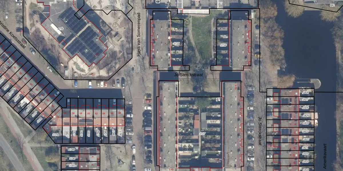 Het perceel waarop het adres ligt is HLM02-Y-1717. De afkorting 'HLM02' staat voor kadastrale gemeente Haarlem. De oppervlakte van het perceel is 2513 m². Dat is groter dan gemiddeld in Haarlem, waar de gemiddelde perceeloppervlakte op 1125,45 m² ligt. Het grootste perceel in de kadastrale gemeente is 46,4 ha. Het kleinste perceel heeft een oppervlakte van 0 m². Op het perceel zijn 45 adressen aanwezig. De laatste wijziging in het de Basisregistratie Kadaster (BRK) was op 06-02-2002.