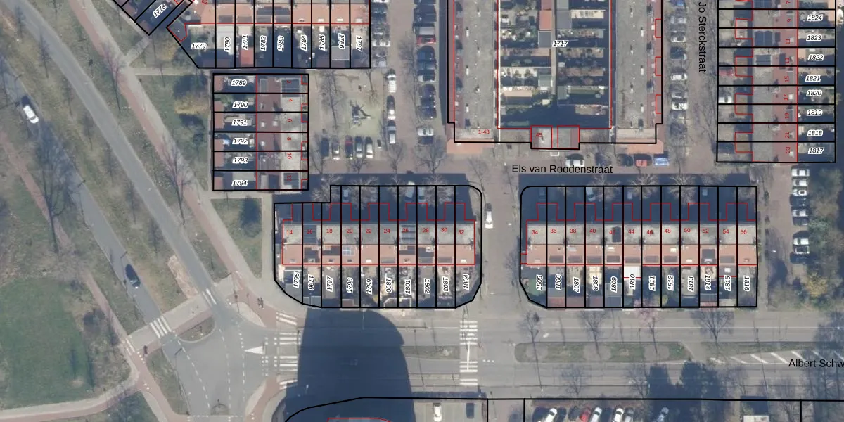 Els van Roodenstraat 28 is gelegen op kadastraal perceel HLM02Y1802. Deze kadastrale aanduiding is uniek en wordt gebruikt door het Kadaster om eigendomsrechten en andere zakelijke rechten vast te leggen. Het perceel maakt onderdeel uit van de kadastrale gemeente Haarlem.
