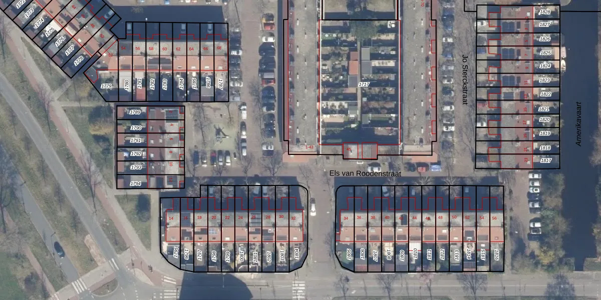 Els van Roodenstraat 43 is gelegen op kadastraal perceel HLM02Y1717. Deze kadastrale aanduiding is uniek en wordt gebruikt door het Kadaster om eigendomsrechten en andere zakelijke rechten vast te leggen. Het perceel maakt onderdeel uit van de kadastrale gemeente Haarlem.