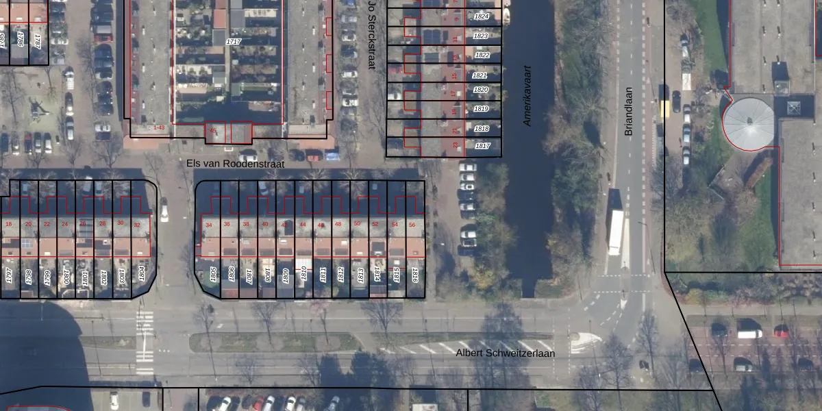 Gebruik de zoekbalk of klik op een perceel voor informatie over de adressen binnen dit perceel.
