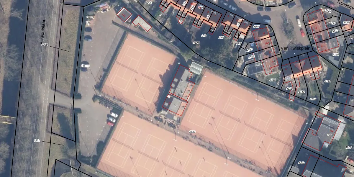 Het perceel waarop Elswoutslaan 11 staat heeft een oppervlakte van 1,2 ha. Dit is een zeer groot perceel. De perceeloppervlakte wordt geregistreerd door het Kadaster. Gedetailleerde informatie over de maten van dit perceel kunt u vinden in het rapport Kadastrale kaart met maatvoering van Elswoutslaan 11.