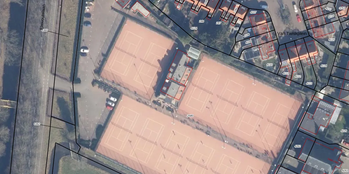 Het perceel waarop Elswoutslaan 13 staat heeft een oppervlakte van 1,2 ha. Dit is een zeer groot perceel. De perceeloppervlakte wordt geregistreerd door het Kadaster. Gedetailleerde informatie over de maten van dit perceel kunt u vinden in het rapport Kadastrale kaart met maatvoering van Elswoutslaan 13.