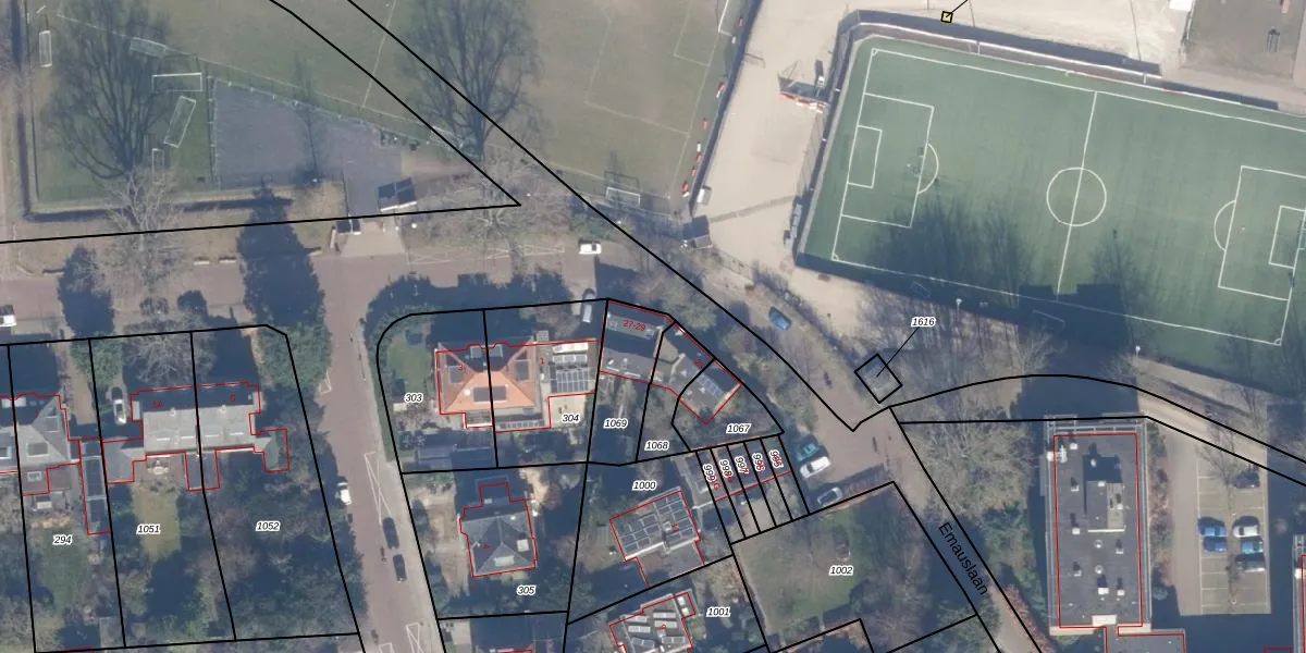 Het perceel waarop Emauslaan 27 staat heeft een oppervlakte van 197 m². Dit is een middelgroot perceel. De perceeloppervlakte wordt geregistreerd door het Kadaster. Gedetailleerde informatie over de maten van dit perceel kunt u vinden in het rapport Kadastrale kaart met maatvoering van Emauslaan 27.