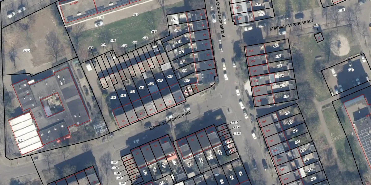Gebruik de zoekbalk of klik op een perceel voor informatie over de adressen binnen dit perceel.