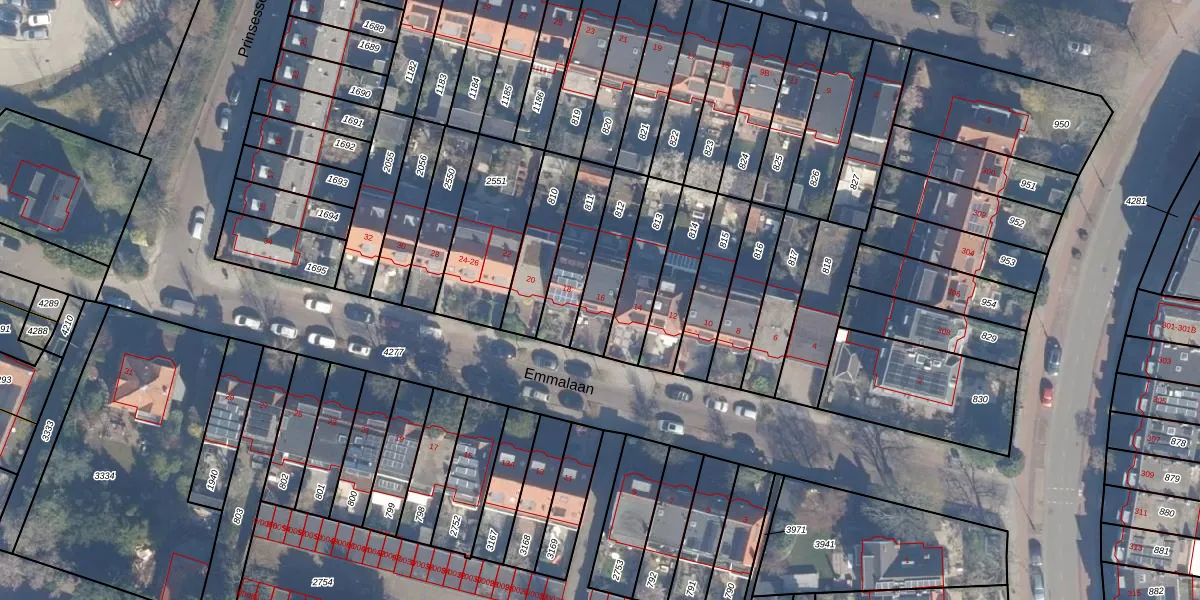 Het perceel waarop Emmalaan 16 staat heeft een oppervlakte van 180 m². Dit is een middelgroot perceel. De perceeloppervlakte wordt geregistreerd door het Kadaster. Gedetailleerde informatie over de maten van dit perceel kunt u vinden in het rapport Kadastrale kaart met maatvoering van Emmalaan 16.