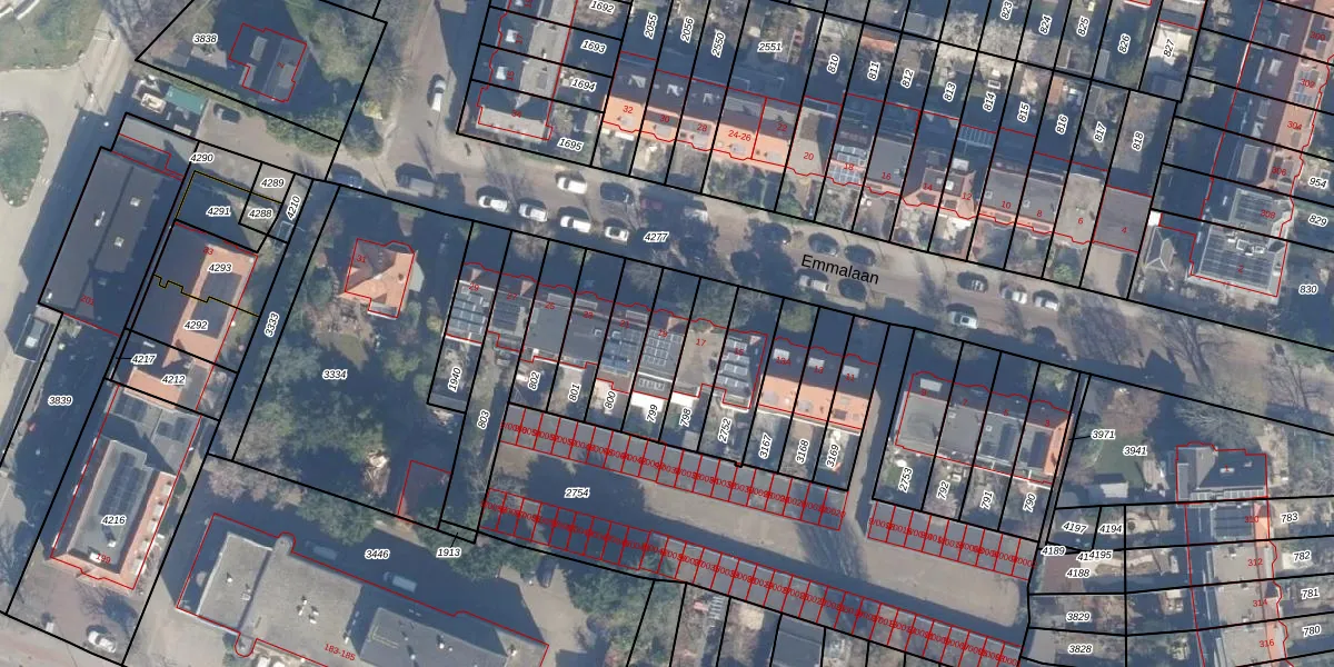 Gebruik de zoekbalk of klik op een perceel voor informatie over de adressen binnen dit perceel.