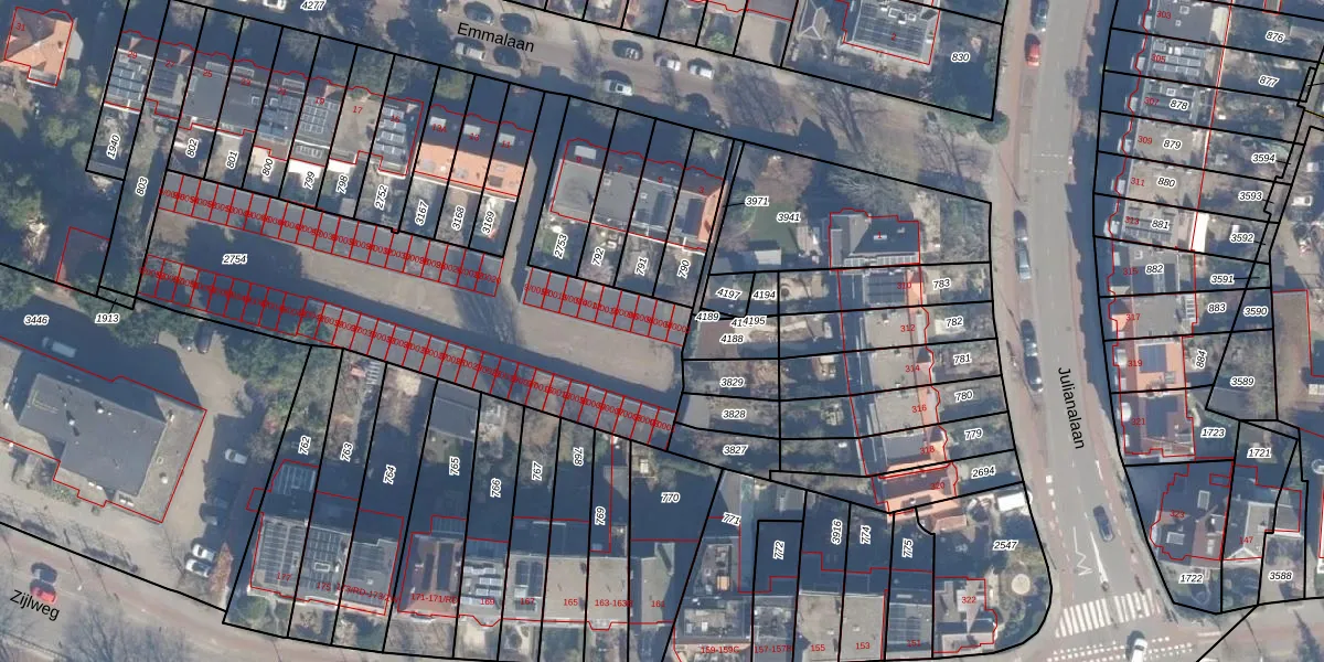 Emmalaan 9-0004 is gelegen op kadastraal perceel HLM02T2754. Deze kadastrale aanduiding is uniek en wordt gebruikt door het Kadaster om eigendomsrechten en andere zakelijke rechten vast te leggen. Het perceel maakt onderdeel uit van de kadastrale gemeente Haarlem.