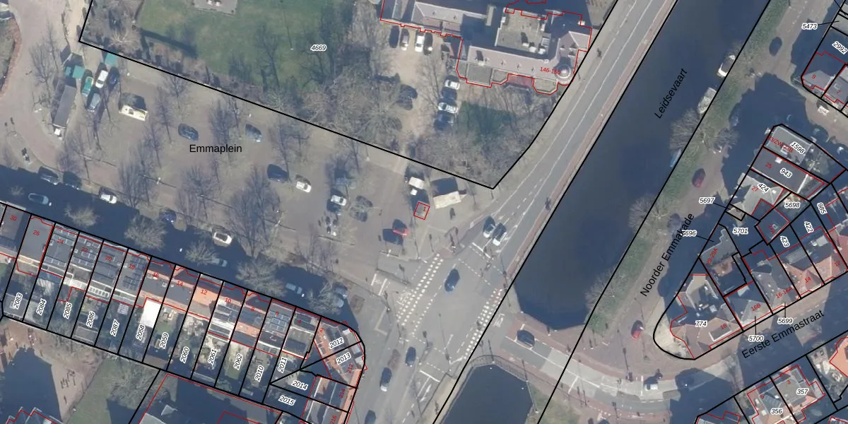 Het perceel waarop Emmaplein 1 staat heeft een oppervlakte van 4,8 ha. Dit is een zeer groot perceel. De perceeloppervlakte wordt geregistreerd door het Kadaster. Gedetailleerde informatie over de maten van dit perceel kunt u vinden in het rapport Kadastrale kaart met maatvoering van Emmaplein 1.