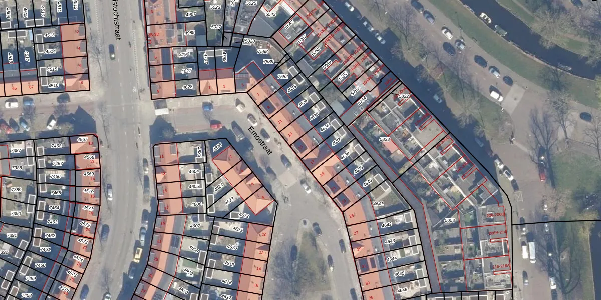 Het perceel waarop Emostraat 15 staat heeft een oppervlakte van 106 m². Dit is een middelgroot perceel. De perceeloppervlakte wordt geregistreerd door het Kadaster. Gedetailleerde informatie over de maten van dit perceel kunt u vinden in het rapport Kadastrale kaart met maatvoering van Emostraat 15.