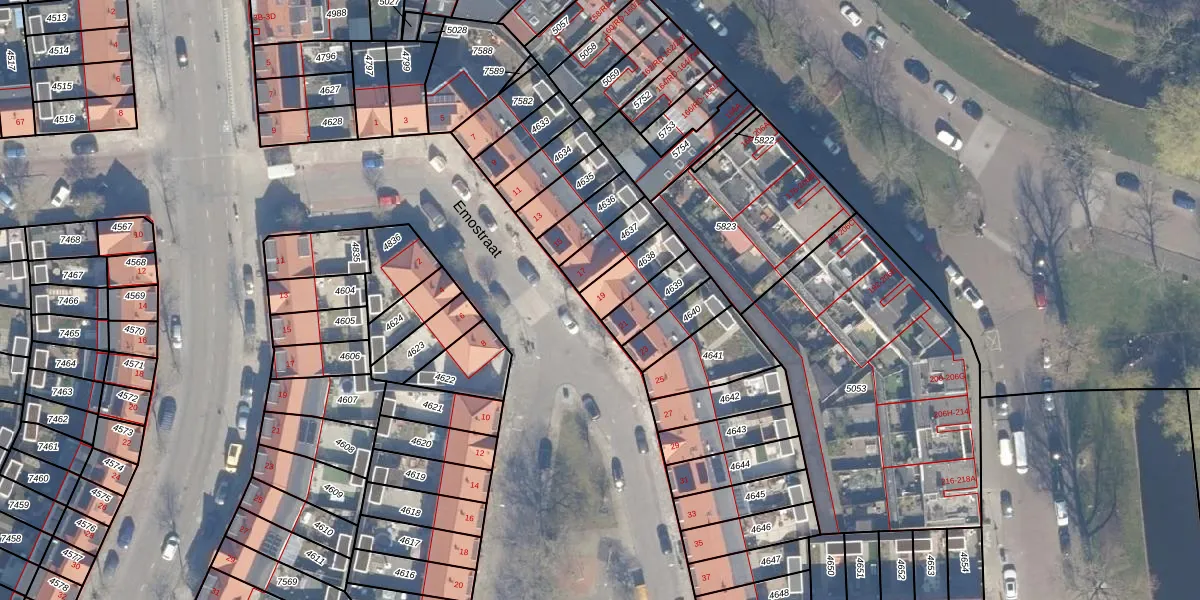 Het perceel waarop Emostraat 19 staat heeft een oppervlakte van 108 m². Dit is een middelgroot perceel. De perceeloppervlakte wordt geregistreerd door het Kadaster. Gedetailleerde informatie over de maten van dit perceel kunt u vinden in het rapport Kadastrale kaart met maatvoering van Emostraat 19.