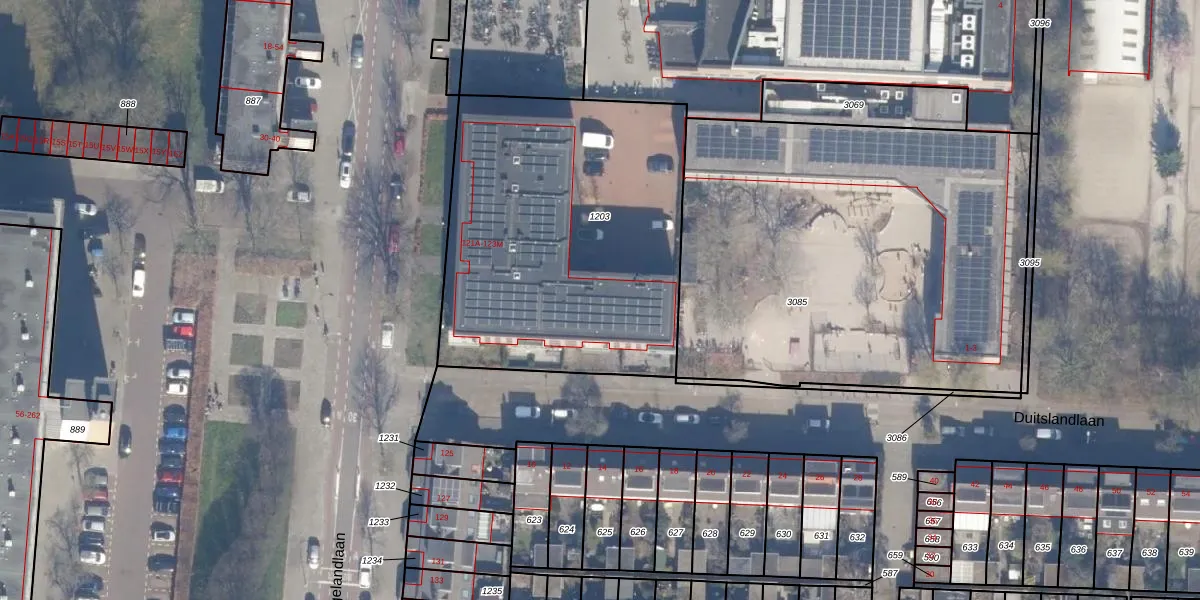 Het perceel waarop het adres ligt is HLM02-Q-1203. De afkorting 'HLM02' staat voor kadastrale gemeente Haarlem. De gemiddelde perceeloppervlakte in de kadastrale gemeente Haarlem is 1123,97 m². Dit perceel is met zijn 1785 m² dus groter dan gemiddeld. Het kleinste perceel in de kadastrale gemeente is 0 m² groot. De grootste perceeloppervlakte is 46,4 ha. Op het perceel liggen in totaal 29 adressen. De huidige grenzen van het perceel zijn digitaal in de Basisregistratie Kadaster (BRK) geregistreerd op 11-10-2010.