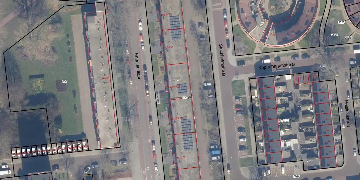 Engelandlaan 227 is gelegen op kadastraal perceel HLM02Y3723. Deze kadastrale aanduiding is uniek en wordt gebruikt door het Kadaster om eigendomsrechten en andere zakelijke rechten vast te leggen. Het perceel maakt onderdeel uit van de kadastrale gemeente Haarlem.