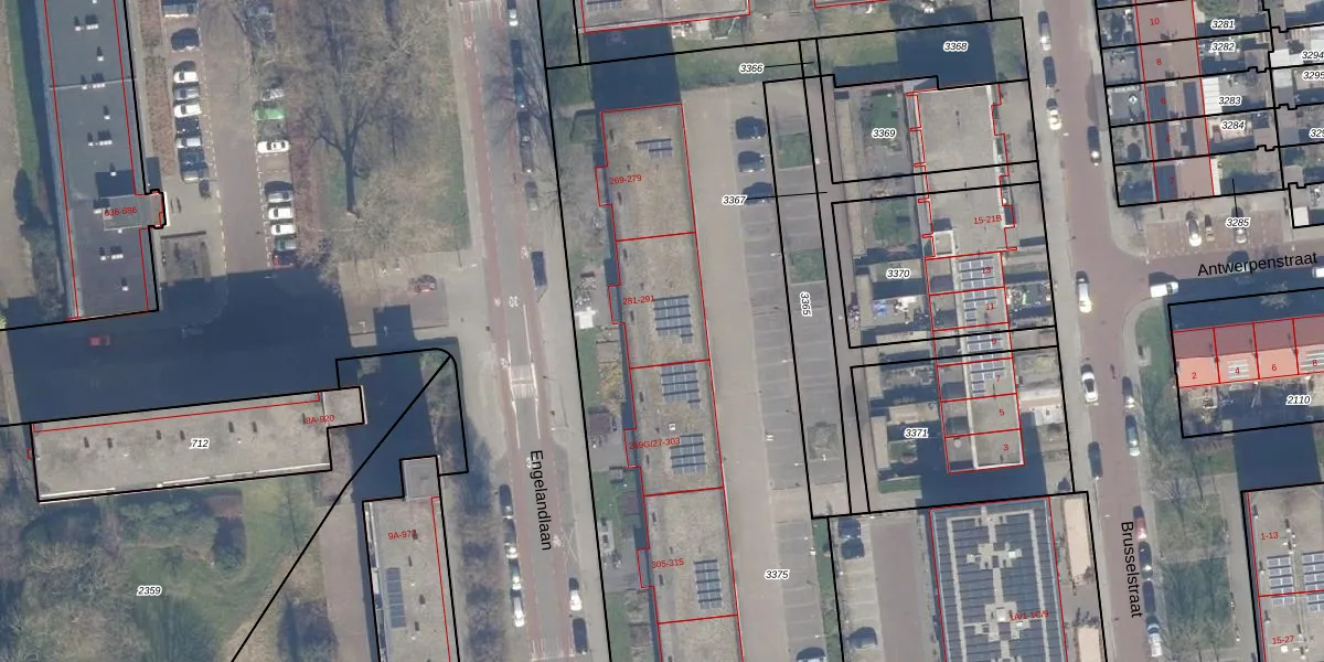 Engelandlaan 289 is gelegen op kadastraal perceel HLM02Y3375. Deze kadastrale aanduiding is uniek en wordt gebruikt door het Kadaster om eigendomsrechten en andere zakelijke rechten vast te leggen. Het perceel maakt onderdeel uit van de kadastrale gemeente Haarlem.