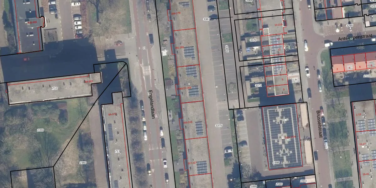 Engelandlaan 299 is gelegen op kadastraal perceel HLM02Y3375. Deze kadastrale aanduiding is uniek en wordt gebruikt door het Kadaster om eigendomsrechten en andere zakelijke rechten vast te leggen. Het perceel maakt onderdeel uit van de kadastrale gemeente Haarlem.