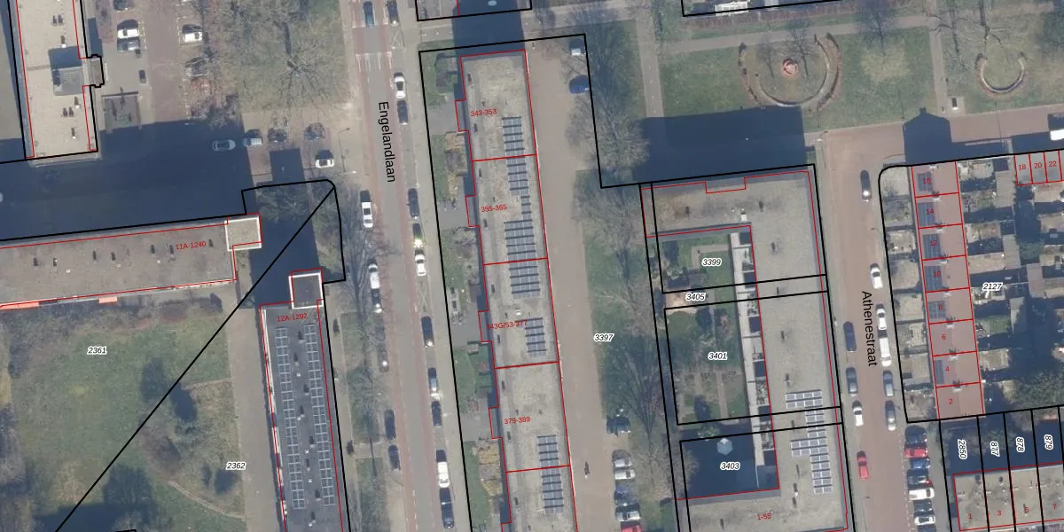 Engelandlaan 343-G-64 is gelegen op kadastraal perceel HLM02Y3397. Deze kadastrale aanduiding is uniek en wordt gebruikt door het Kadaster om eigendomsrechten en andere zakelijke rechten vast te leggen. Het perceel maakt onderdeel uit van de kadastrale gemeente Haarlem.