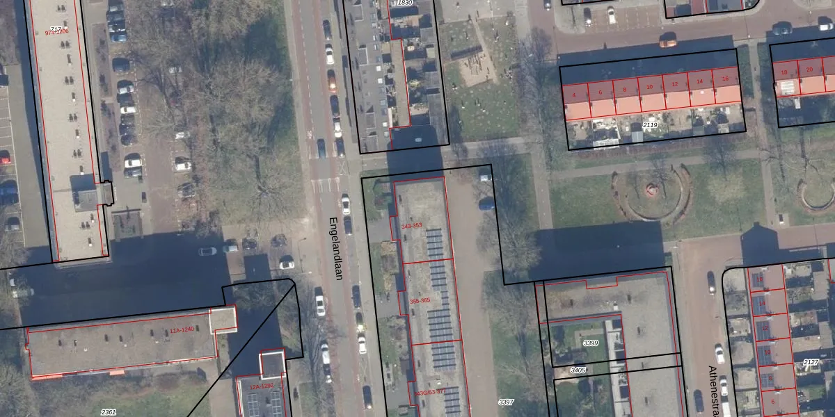 Engelandlaan 345 is gelegen op kadastraal perceel HLM02Y3397. Deze kadastrale aanduiding is uniek en wordt gebruikt door het Kadaster om eigendomsrechten en andere zakelijke rechten vast te leggen. Het perceel maakt onderdeel uit van de kadastrale gemeente Haarlem.