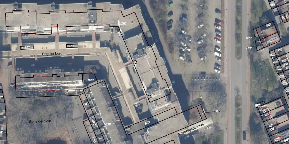 Het perceel waarop Engelenburg 303 staat heeft een oppervlakte van 1845 m². Dit is een zeer groot perceel. De perceeloppervlakte wordt geregistreerd door het Kadaster. Gedetailleerde informatie over de maten van dit perceel kunt u vinden in het rapport Kadastrale kaart met maatvoering van Engelenburg 303.