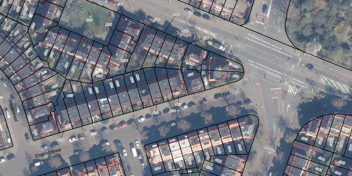 Engelszstraat 25 is gelegen op kadastraal perceel HLM01G4227. Deze kadastrale aanduiding is uniek en wordt gebruikt door het Kadaster om eigendomsrechten en andere zakelijke rechten vast te leggen. Het perceel maakt onderdeel uit van de kadastrale gemeente Haarlem.