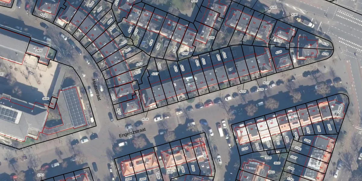 Engelszstraat 9 is gelegen op kadastraal perceel HLM01G4219. Deze kadastrale aanduiding is uniek en wordt gebruikt door het Kadaster om eigendomsrechten en andere zakelijke rechten vast te leggen. Het perceel maakt onderdeel uit van de kadastrale gemeente Haarlem.
