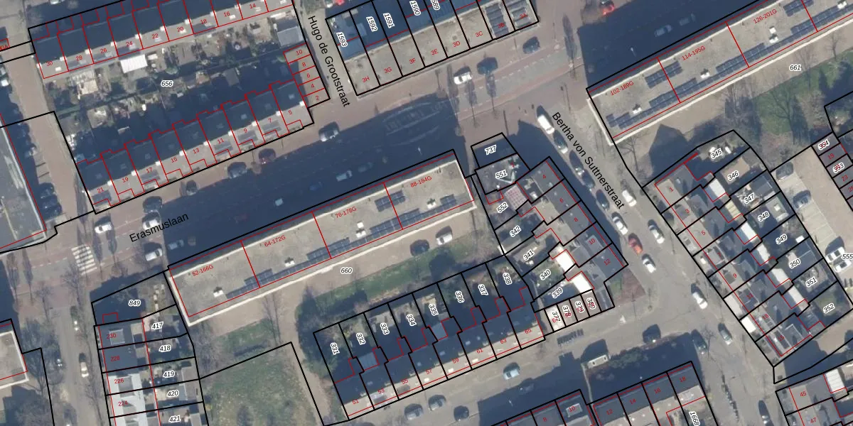 Erasmuslaan 181-G is gelegen op kadastraal perceel HLM02X660. Deze kadastrale aanduiding is uniek en wordt gebruikt door het Kadaster om eigendomsrechten en andere zakelijke rechten vast te leggen. Het perceel maakt onderdeel uit van de kadastrale gemeente Haarlem.