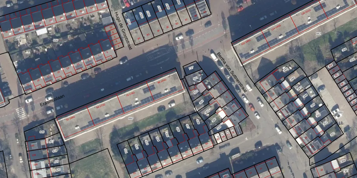 Erasmuslaan 184-G is gelegen op kadastraal perceel HLM02X660. Deze kadastrale aanduiding is uniek en wordt gebruikt door het Kadaster om eigendomsrechten en andere zakelijke rechten vast te leggen. Het perceel maakt onderdeel uit van de kadastrale gemeente Haarlem.