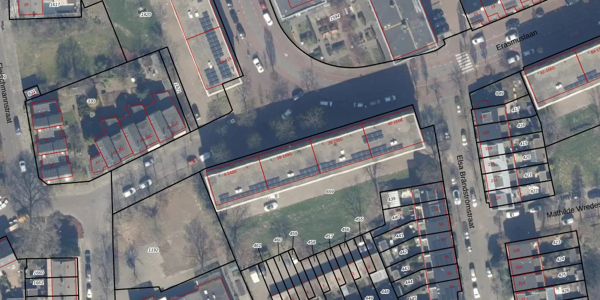 Het perceel waarop Erasmuslaan 22 staat heeft een oppervlakte van 2500 m². Dit is een zeer groot perceel. De perceeloppervlakte wordt geregistreerd door het Kadaster. Gedetailleerde informatie over de maten van dit perceel kunt u vinden in het rapport Kadastrale kaart met maatvoering van Erasmuslaan 22.
