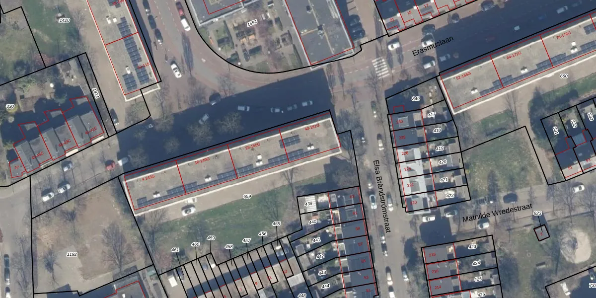Erasmuslaan 44 is gelegen op kadastraal perceel HLM02X659. Deze kadastrale aanduiding is uniek en wordt gebruikt door het Kadaster om eigendomsrechten en andere zakelijke rechten vast te leggen. Het perceel maakt onderdeel uit van de kadastrale gemeente Haarlem.