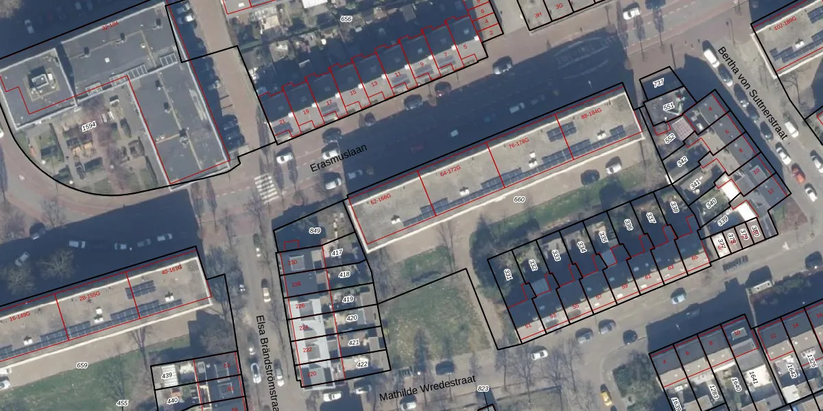 Erasmuslaan 62 is gelegen op kadastraal perceel HLM02X660. Deze kadastrale aanduiding is uniek en wordt gebruikt door het Kadaster om eigendomsrechten en andere zakelijke rechten vast te leggen. Het perceel maakt onderdeel uit van de kadastrale gemeente Haarlem.