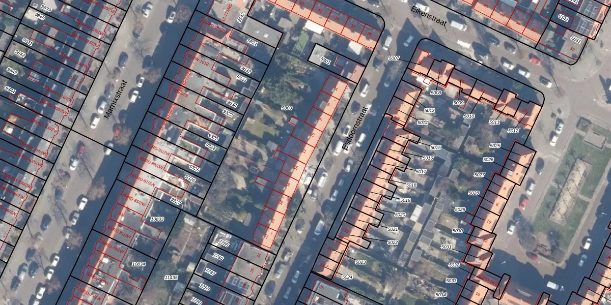 Esdoornstraat 12 is gelegen op kadastraal perceel STN01B5800. Deze kadastrale aanduiding is uniek en wordt gebruikt door het Kadaster om eigendomsrechten en andere zakelijke rechten vast te leggen. Het perceel maakt onderdeel uit van de kadastrale gemeente Schoten.