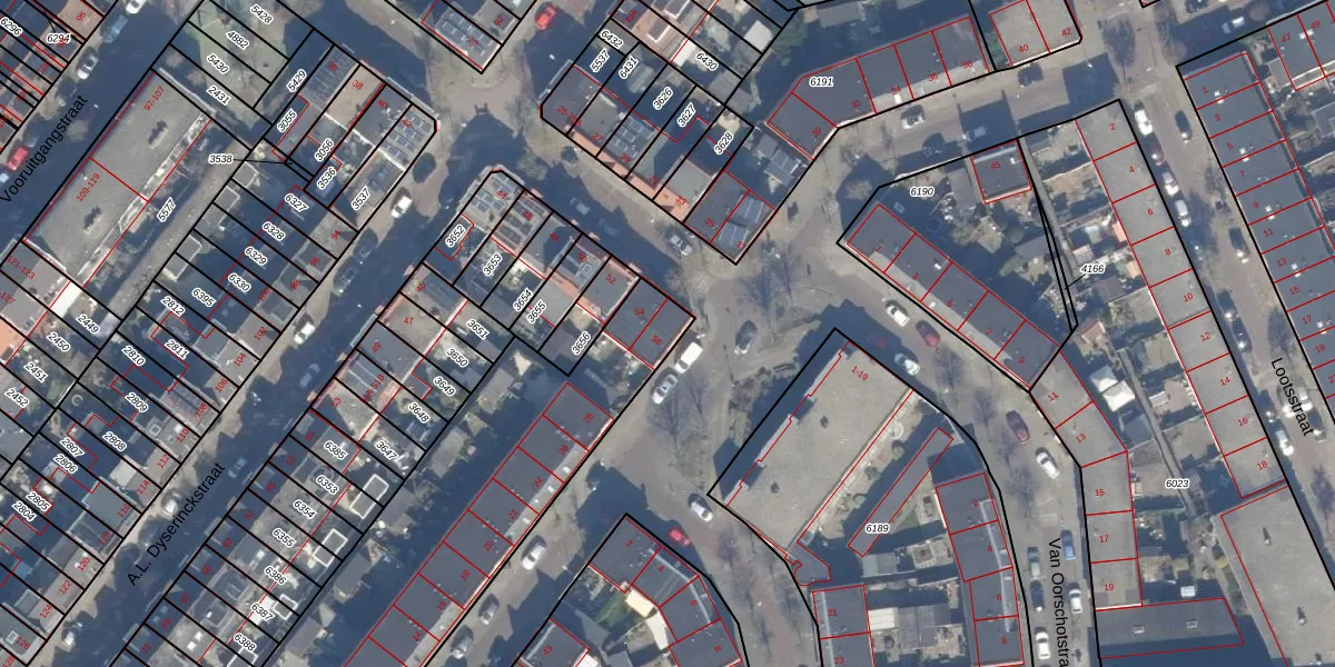 Het perceel waarop het adres ligt is HLM01-E-6187. De afkorting 'HLM01' staat voor kadastrale gemeente Haarlem. De oppervlakte van het perceel is 1906 m². Dat is groter dan gemiddeld in Haarlem, waar de gemiddelde perceeloppervlakte op 328,33 m² ligt. De grootste perceeloppervlakte in de kadastrale gemeente is 13,9 ha. De kleinste oppervlakte bedraagt 0 m². Op het perceel liggen in totaal 15 adressen. De huidige grenzen van het perceel zijn digitaal in de Basisregistratie Kadaster (BRK) geregistreerd op 07-01-2004.