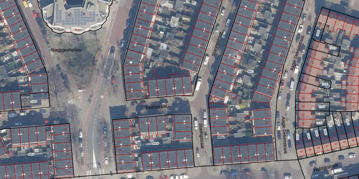 Feithstraat 13 is gelegen op kadastraal perceel HLM01E4857. Deze kadastrale aanduiding is uniek en wordt gebruikt door het Kadaster om eigendomsrechten en andere zakelijke rechten vast te leggen. Het perceel maakt onderdeel uit van de kadastrale gemeente Haarlem.