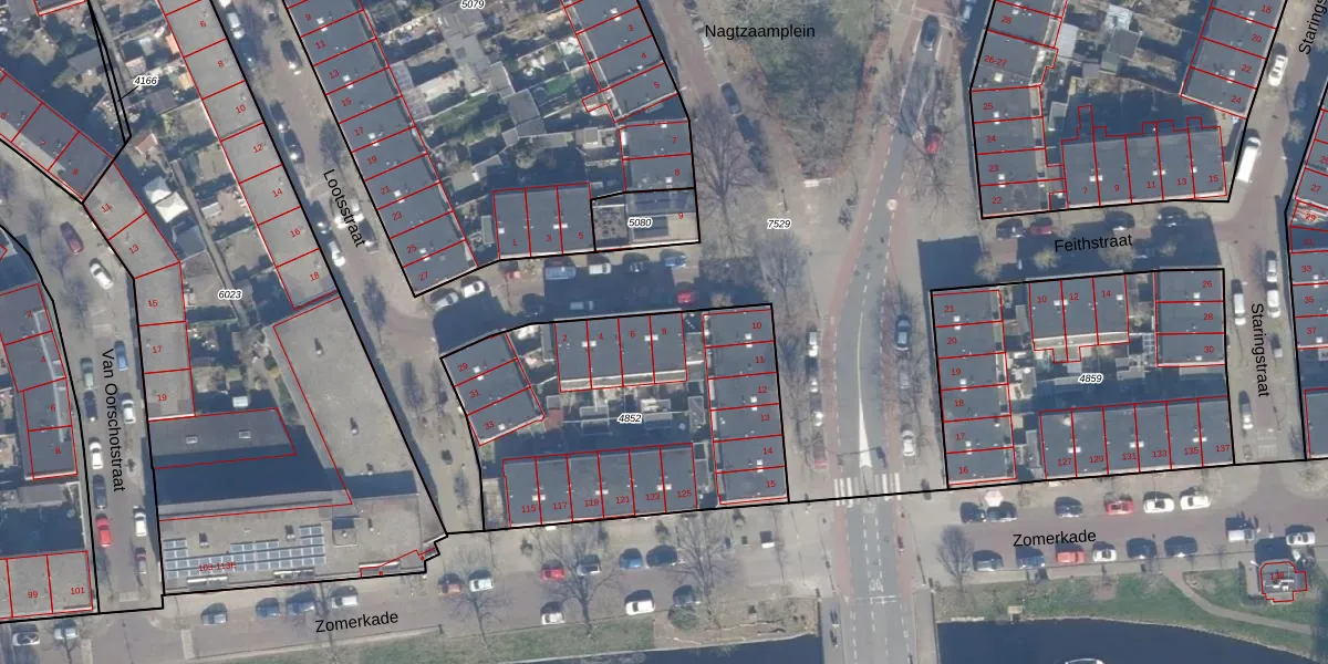 Het perceel waarop het adres ligt is HLM01-E-4852. De afkorting 'HLM01' staat voor kadastrale gemeente Haarlem. De oppervlakte van het perceel is 1420 m². Dat is groter dan gemiddeld in Haarlem, waar de gemiddelde perceeloppervlakte op 328,33 m² ligt. Het grootste perceel in de kadastrale gemeente is 13,9 ha. Het kleinste perceel heeft een oppervlakte van 0 m². Op het perceel zijn 19 adressen aanwezig. In de Basisregistratie Kadaster (BRK) werden de grenzen van het perceel geregistreerd op 04-10-2001.