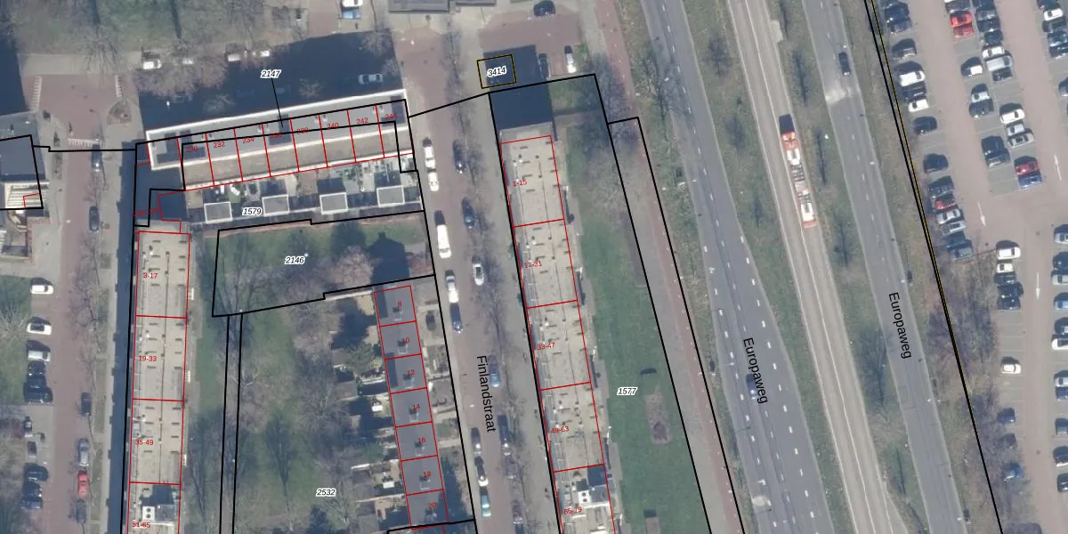 Het perceel waarop Finlandstraat 17 staat heeft een oppervlakte van 2601 m². Dit is een zeer groot perceel. De perceeloppervlakte wordt geregistreerd door het Kadaster. Gedetailleerde informatie over de maten van dit perceel kunt u vinden in het rapport Kadastrale kaart met maatvoering van Finlandstraat 17.