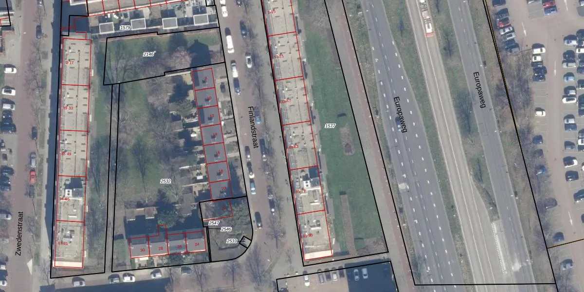Het perceel waarop Finlandstraat 59 staat heeft een oppervlakte van 2601 m². Dit is een zeer groot perceel. De perceeloppervlakte wordt geregistreerd door het Kadaster. Gedetailleerde informatie over de maten van dit perceel kunt u vinden in het rapport Kadastrale kaart met maatvoering van Finlandstraat 59.