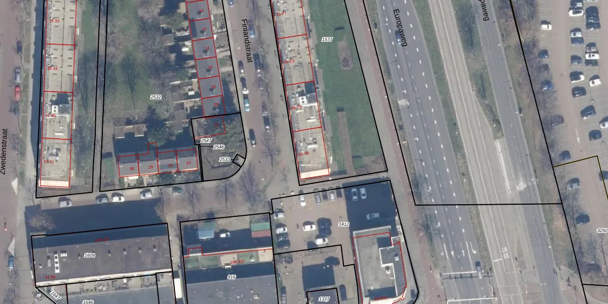 Het perceel waarop Finlandstraat 83 staat heeft een oppervlakte van 2601 m². Dit is een zeer groot perceel. De perceeloppervlakte wordt geregistreerd door het Kadaster. Gedetailleerde informatie over de maten van dit perceel kunt u vinden in het rapport Kadastrale kaart met maatvoering van Finlandstraat 83.