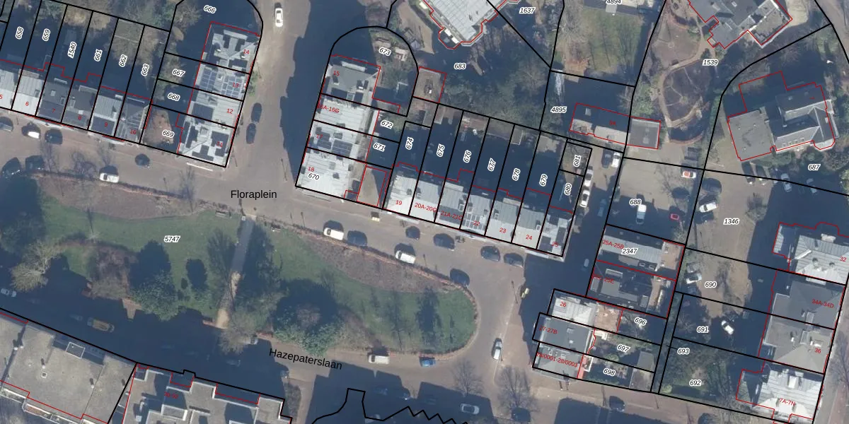 Het perceel waarop Floraplein 20-B staat heeft een oppervlakte van 172 m². Dit is een middelgroot perceel. De perceeloppervlakte wordt geregistreerd door het Kadaster. Gedetailleerde informatie over de maten van dit perceel kunt u vinden in het rapport Kadastrale kaart met maatvoering van Floraplein 20-B.