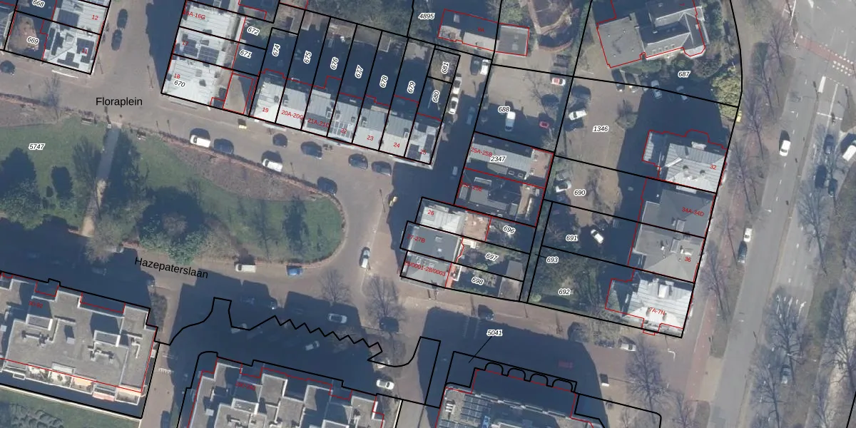 Floraplein 26 is gelegen op kadastraal perceel HLM01I696. Deze kadastrale aanduiding is uniek en wordt gebruikt door het Kadaster om eigendomsrechten en andere zakelijke rechten vast te leggen. Het perceel maakt onderdeel uit van de kadastrale gemeente Haarlem.