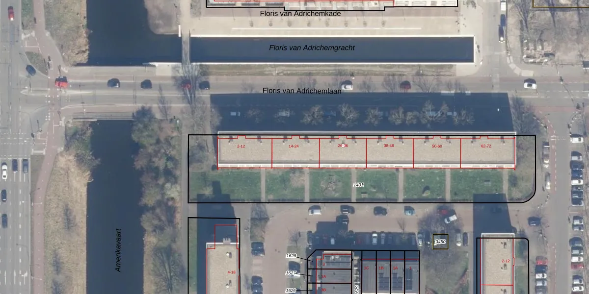 Floris van Adrichemlaan 16 is gelegen op kadastraal perceel HLM02Q1401. Deze kadastrale aanduiding is uniek en wordt gebruikt door het Kadaster om eigendomsrechten en andere zakelijke rechten vast te leggen. Het perceel maakt onderdeel uit van de kadastrale gemeente Haarlem.