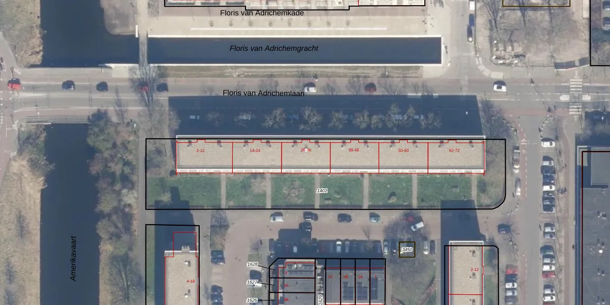 Floris van Adrichemlaan 32 is gelegen op kadastraal perceel HLM02Q1401. Deze kadastrale aanduiding is uniek en wordt gebruikt door het Kadaster om eigendomsrechten en andere zakelijke rechten vast te leggen. Het perceel maakt onderdeel uit van de kadastrale gemeente Haarlem.