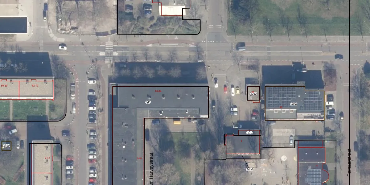 Het perceel waarop het adres ligt is HLM02-Q-946. De afkorting 'HLM02' staat voor kadastrale gemeente Haarlem. De oppervlakte van het perceel is 1773 m². Dat is groter dan gemiddeld in Haarlem, waar de gemiddelde perceeloppervlakte op 1124,37 m² ligt. De grootste perceeloppervlakte in de kadastrale gemeente is 46,4 ha. De kleinste oppervlakte bedraagt 0 m². Op het perceel zijn 29 adressen aanwezig. In de Basisregistratie Kadaster (BRK) werden de grenzen van het perceel geregistreerd op 12-02-2002.