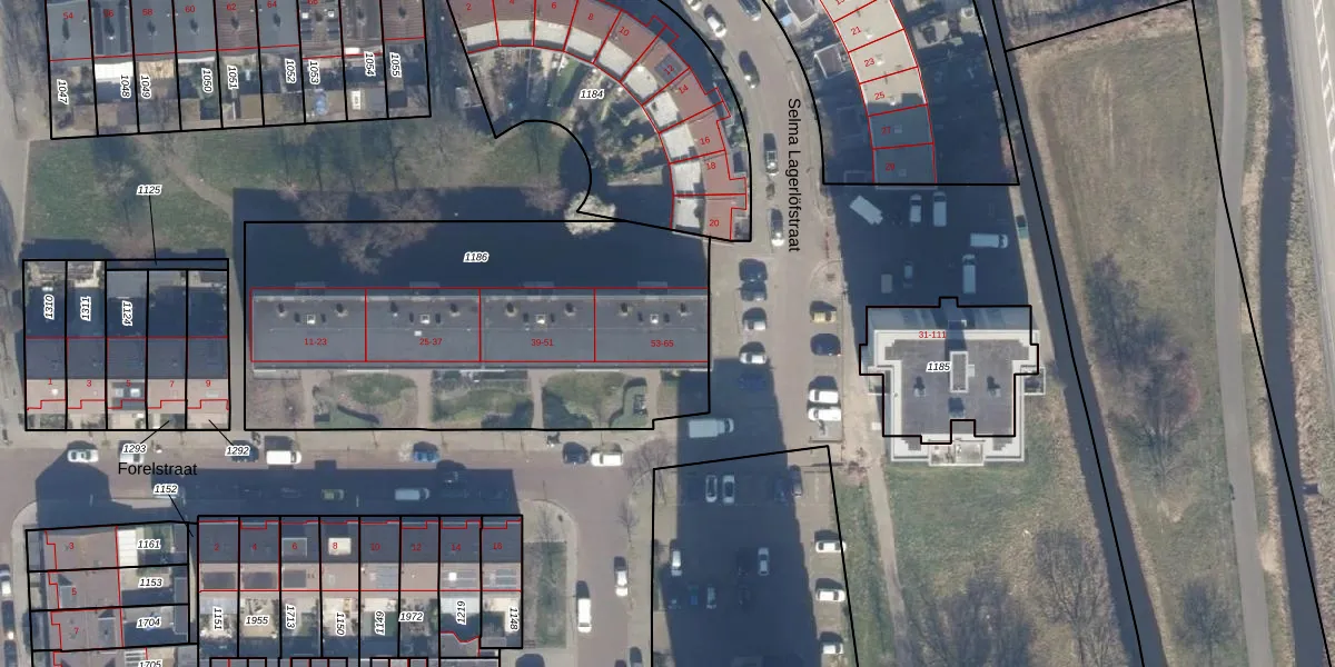 Het perceel waarop Forelstraat 61 staat heeft een oppervlakte van 2153 m². Dit is een zeer groot perceel. De perceeloppervlakte wordt geregistreerd door het Kadaster. Gedetailleerde informatie over de maten van dit perceel kunt u vinden in het rapport Kadastrale kaart met maatvoering van Forelstraat 61.
