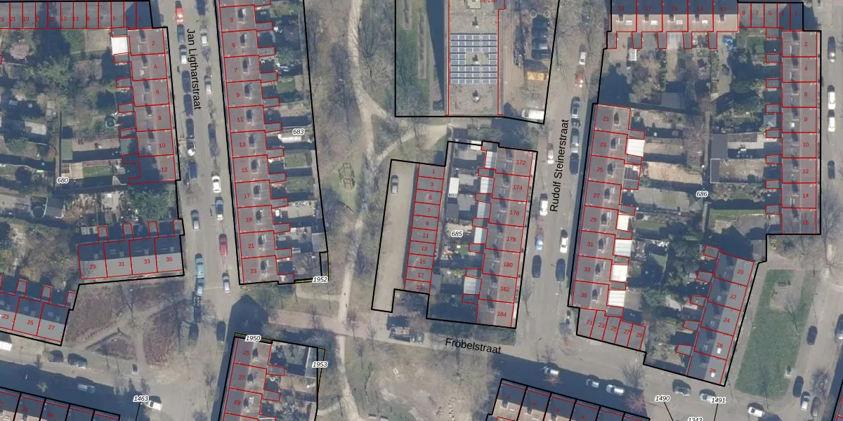 Het perceel waarop Fröbelstraat 7 staat heeft een oppervlakte van 1320 m². Dit is een zeer groot perceel. De perceeloppervlakte wordt geregistreerd door het Kadaster. Gedetailleerde informatie over de maten van dit perceel kunt u vinden in het rapport Kadastrale kaart met maatvoering van Fröbelstraat 7.