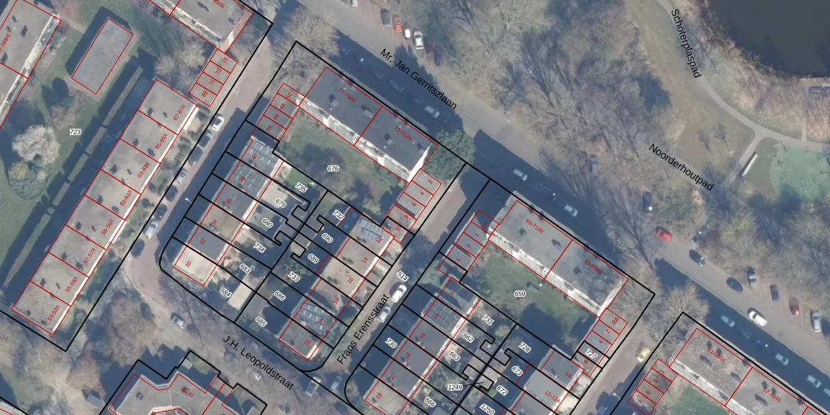 Het perceel waarop Frans Erensstraat 6 staat heeft een oppervlakte van 1200 m². Dit is een zeer groot perceel. De perceeloppervlakte wordt geregistreerd door het Kadaster. Gedetailleerde informatie over de maten van dit perceel kunt u vinden in het rapport Kadastrale kaart met maatvoering van Frans Erensstraat 6.